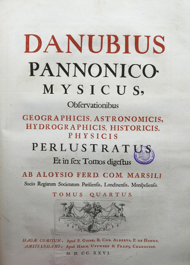 Nun aber endlich zu unserem wichtigsten Thema, dem Megawerk Marsiglis über die Donau, „Danubius Pannonico-Mysicus“. Diese sechsbändige, mit 288 Kupferstichen illustrierte Monographie über den Donauraum, seine Geschichte und Geographie, erschien 1726, veröffentlicht in Amsterdam und Den Haag. Wir müssen gar nicht viel über die Qualität und Schönheit der Karten und Stiche sagen – Leserinnen und Leser können eine kleine Auswahl hier im Beitrag bestaunen.