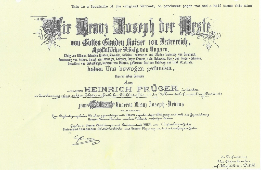 Die Ernennung zum Ritter von Kaiser Franz Joseph I. in Anerkennung seiner auf dem Gebiete der öffentlichen Wohltätigkeit und der volkswirtschaftlich erworbenen Verdienste. Quelle: Archiv der Familie Lippert
