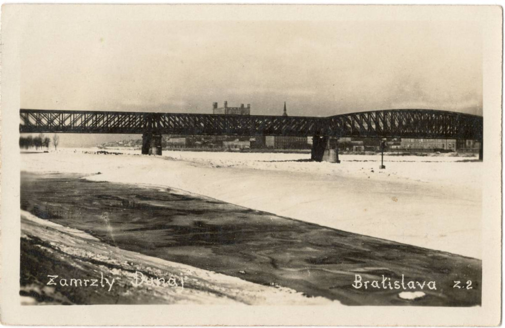 Die zugefrorene Donau, fotografiert von der Petržalka-Seite des Flusses vom Elysium aus. Die Donau fror zum letzten Mal in Bratislava im Jahr 1965 zu. (Quelle: Archiv des Autors)