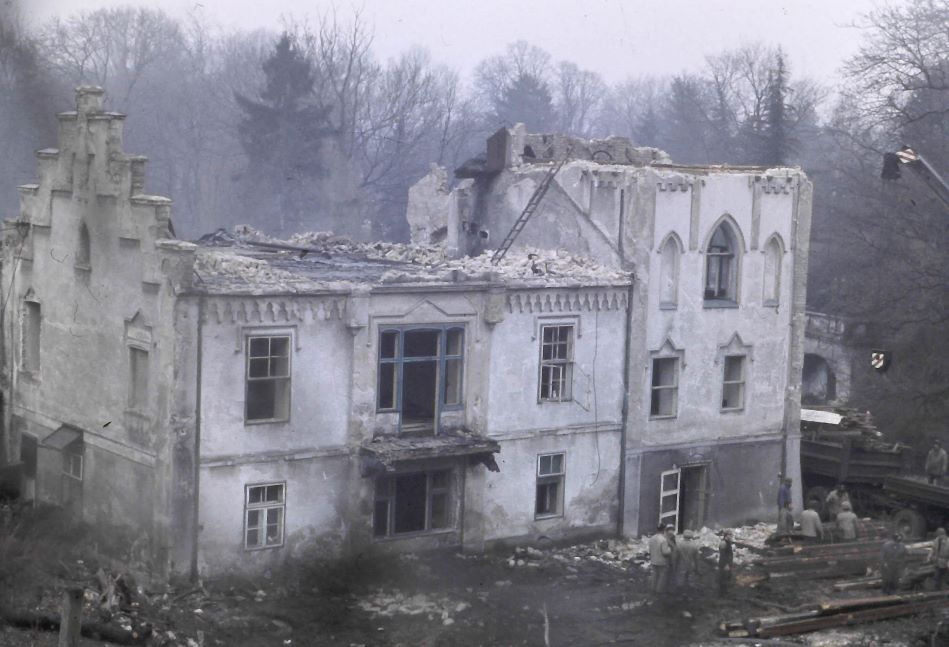 Abriss der Villa von Lanfranconi im April 1986 (Blick von der Nordseite). Im Hintergrund hinter der Villa sieht man das Gewölbe des Weinkellers. Foto: die Autorin