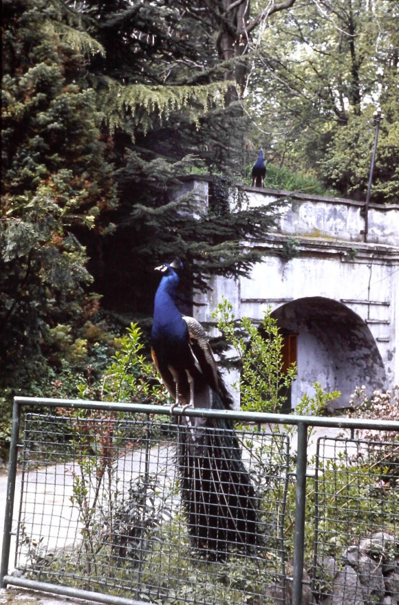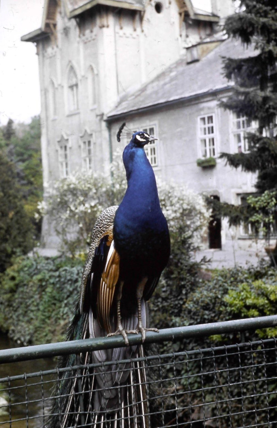 Der Pfau „Fero“ posiert auf dem Geländer über Vydrica. Foto: die Autorin