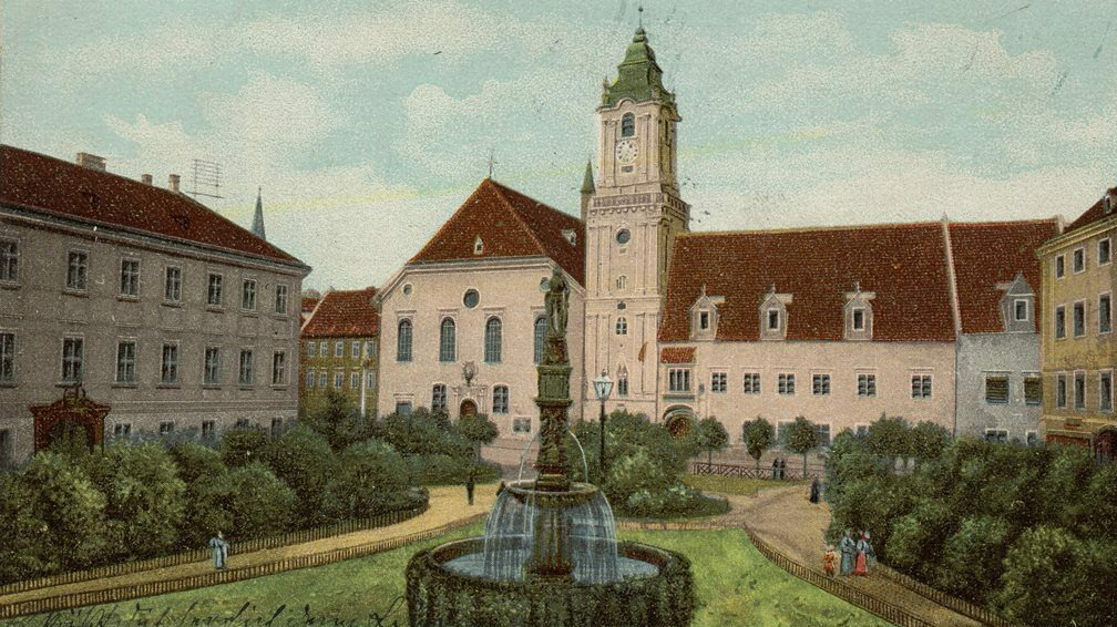 Das alte Rathaus mit seinem markanten Turm. (Bild: GMB/Webumenia.sk)