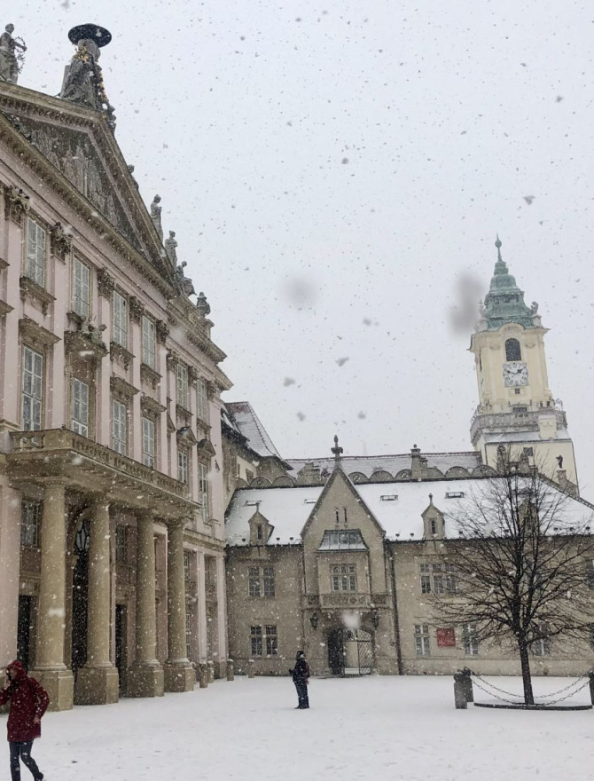 Hinter dem alten Rathaus am Primatialplatz, in der Zeit der Magyarisierung Batthyányplatz genannt, liegen zwei weitere Rathäuser: der Sitz des Bürgermeisters im Primatialpalais und gegenüber der neue Magistrat aus kommunistischer Zeit. Das pompöse Primatialpalais, also der Sitz des Primas, wurde für den Kardinal-Erzbischof Fürst Josef Batthyány gebaut. Auch ein anderer bekannter Pressburger Name ist mit dem ehemaligen Bischofssitz verbunden: Messerschmidt. Der Bruder des berühmten Franz Xaver hat die prächtigen Giebelfiguren der Wissenschaft, Vaterlandsliebe, Regierungskunst und Theologie geschaffen. Berühmt ist das Palais am ehemaligen Getreidemarkt, Tandelmarkt oder Johannisplatz aber aus einem anderen Grund: 1805 wurde in seinem Spiegelsaal der Friede von Pressburg zwischen Österreich und dem napoleonischen Frankreich geschlossen. Gedenktafeln im Foyer, eine alte auf Deutsch und eine neuere auf Slowakisch, erinnern daran. Zu dauerhaftem Frieden hat der Pressburger Vertrag bekannterweise nicht geführt, was wahrscheinlich auch keiner der damaligen Akteure erwartet hat. Für Österreich war der Vertrag eine Katastrophe. Tirol und Vorarlberg waren ebenso futsch wie Vorderösterreich mit dem Breisgau. Die erst acht Jahre zuvor dank Napoleons Gnaden gewonnenen Gebiete der Republik Venedig mit Venezien, Westistrien und Dalmatien wurden den Habsburgern auch wieder genommen. Dafür kam Salzburg erstmals an die habsburgische Hauptlinie.