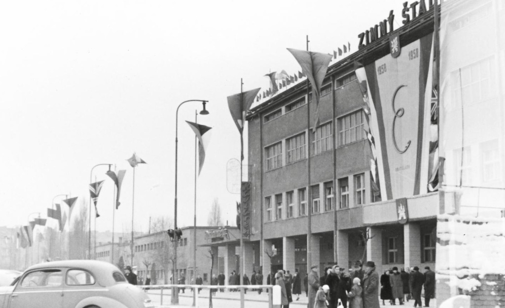 Das alte Winterstadion in Bratislava im Jahr 1958, als dort die Eiskunstlauf-Europameisterschaft stattfand.
