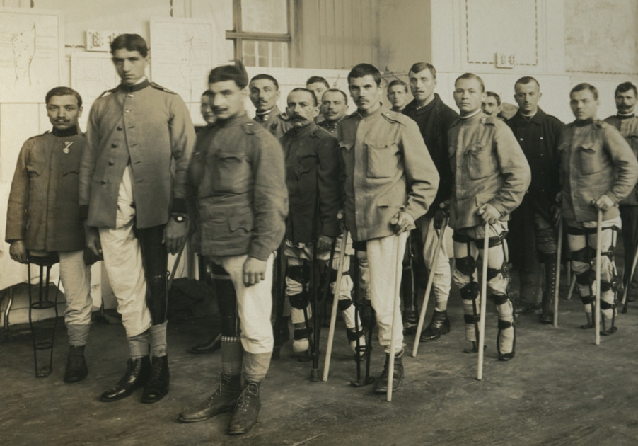 Vojnových invalidov, pracujúcich v dielňach, vykreslil istý prešporský spravodajca nasledovne: „v jednej z výstavných sál stoja aj samotní invalidní hrdinovia. Jánosovia Nagyovia a Péterovia Kisovia, bezmenní hrdinovia, ktorí alegorizujú vojnu a jej útrapy. Jeden z nich má na oboch nohách protézy, keby ich neukázal, ani by si to nikto nevšimol. Istému roľníkovi vyrobili umelú ruku, do ktorej môže uchopiť rýľ, motyku, kováč v ruke s kovovým hákom zviera kladivo a tak ďalej... každý dostane takú protézu, s akou dokáže vykonávať svoje remeslo, a o miestnosť ďalej sa už nachádzajú výstavné trhy: obrazy, topánky, kufre, košíky, dokonca majstrovské sochy, ktoré zhotovili invalidní hrdinovia tu, v našom meste. Bezruký vojak nebude viac páriom, bezprizorne sa túlajúcim po uliciach, pomohli mu nájsť cestu k práci, k víťaznému životu...“