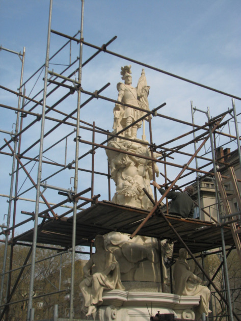 Barokové súsošie odstránili z podstavca v roku 2007, keďže jeho stav sa rapídne zhoršil. Poveternostné vplyvy poškodili materiál (vápenec) a otrasy, spôsobené električkovou dopravou, zasa urýchlili erodovanie a narušili jeho statiku. Náklady na obnovu boli v začiatkoch odhadované na 465 000 €, no v rokoch 2009 – 2011 sa reštaurátorské práce prerušili.