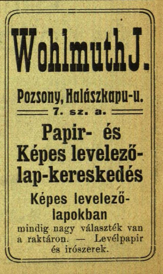 Obchod s papiernickým tovarom a pohľadnicami J. Wohlmuta