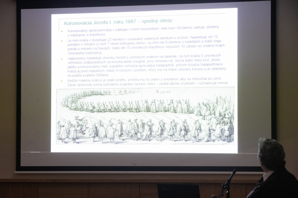 Veduty si rozdelil na menšie časti, sekvencie, a po ich priblížení bolo dobre vidieť napr. to, ako sa publikum ruje o korunovačné súkno, či ako 9-ročnému Jozefovi I. pridržiavajú korunovačný plášť, aby ho neťahal po zemi. Doc. Segešovi ďakujeme zapútavú prednášku a veríme, že podobne vyberaným spôsobom sa budú niesť aj naše ďalšie prednášky roku 2019!