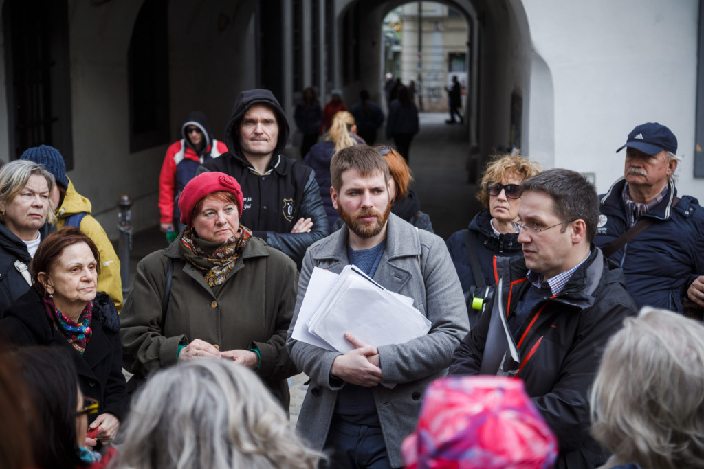 Vlastivedný sprievodca M_P_BA Ivor Švihran a podpredseda OZ Bratislavské rožky, sprievodca Árpád Korpás porozprávali prítomným o udalostiach, ktoré viedli k pripojeniu Bratislavy k Československej republike a k tomu, že mesto sa pod názvom Bratislava stalo hlavným mestom slovenskej časti spoločného štátu. Priblížili aj postoj dobovej bratislavskej verejnosti k týmto udalostiam.