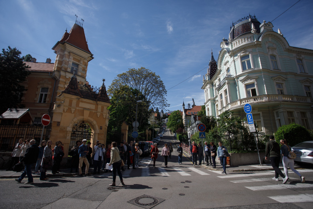 Takmer šesťdesiatčlenná skupina, ktorá úspešne odolávala aj silnému vetru, sa vydala na potulky z Mierového námestia, dotkla sa ulíc Gunduličova, Moyzesova, Fraňa Kráľa, Lermontovova, Vlčkova a ponavštevovala vily na Kuzmányho ulici, ktoré patria medzi najstaršie – začali ich stavať v 60. rokoch 19. storočia.