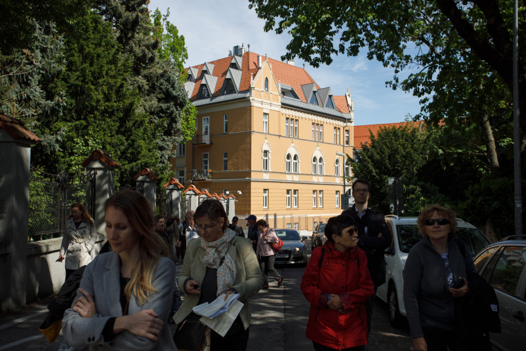 Dňa 28. apríla 2019 sa záujemcovia pod vedením sprievodkyne Ágnes B. Mánye vyštverali až na Kuzmányho ulicu (kedysi Újtelep, Neustift) a do jej okolia, čiže k vilám, ktoré vyrástli na mieste bývalých cirkevných záhrad, vinohradov a ovocných sadov, ohraničovaných dnešnými Palisádami (Védcölöp út, Pallisadenweg) a Štefánikovou ulicou (Stefánia-út, Stephaniestrasse).