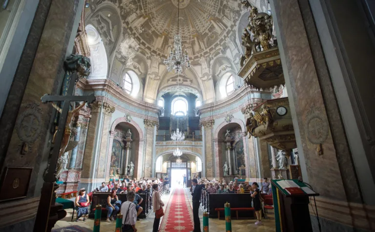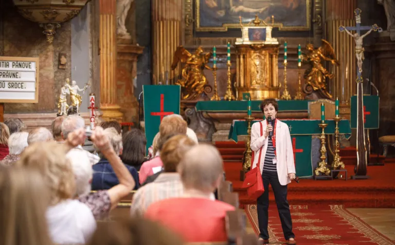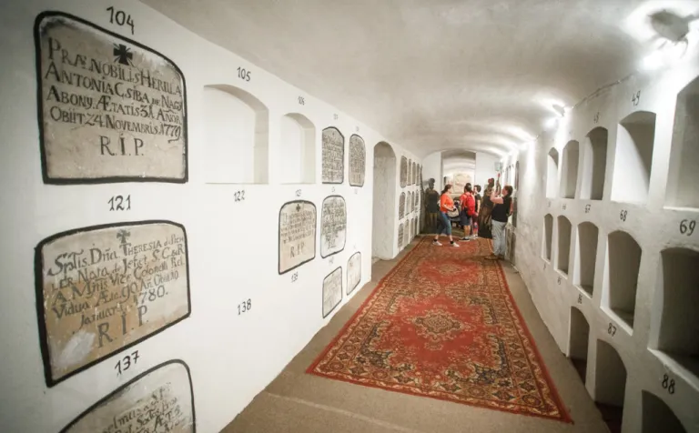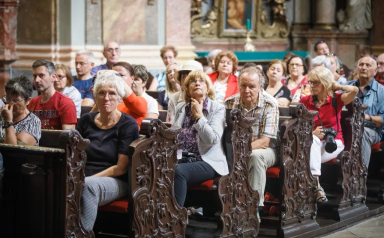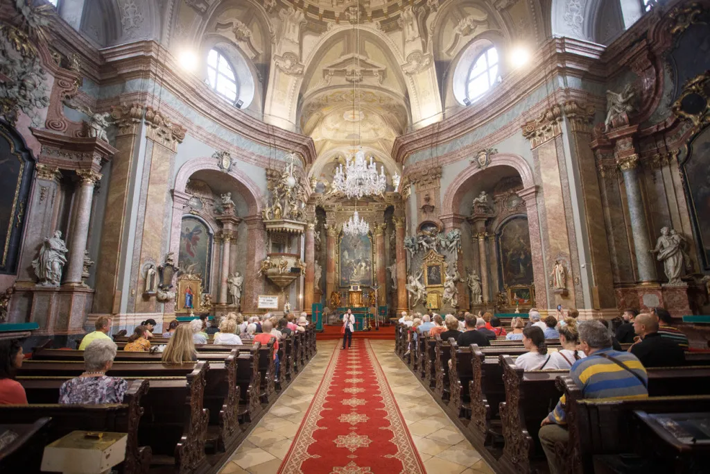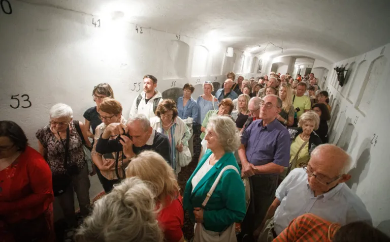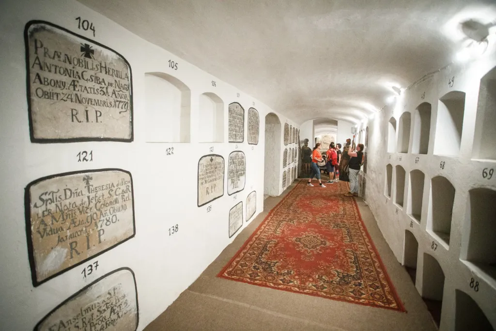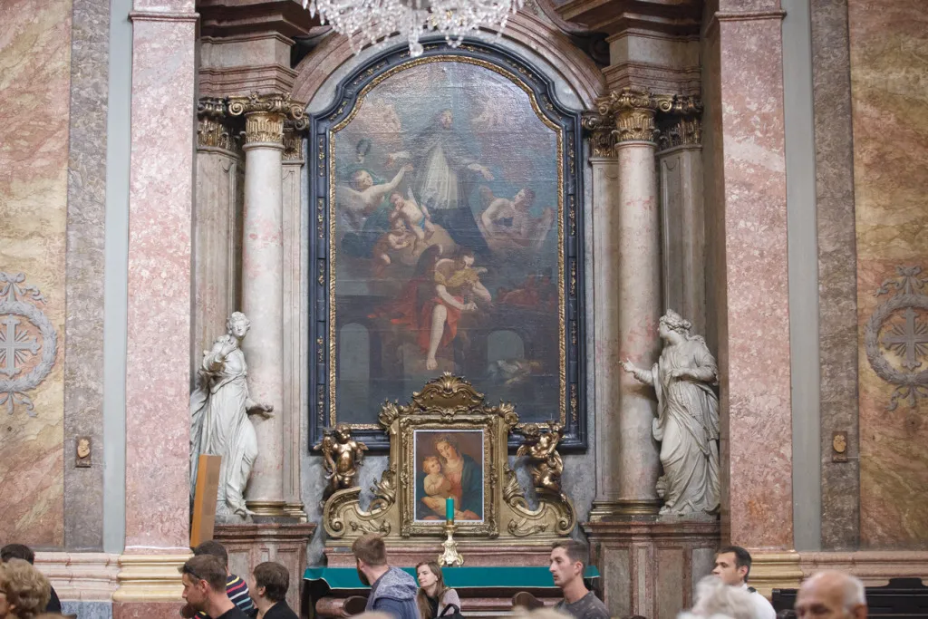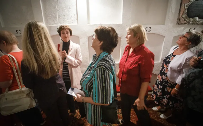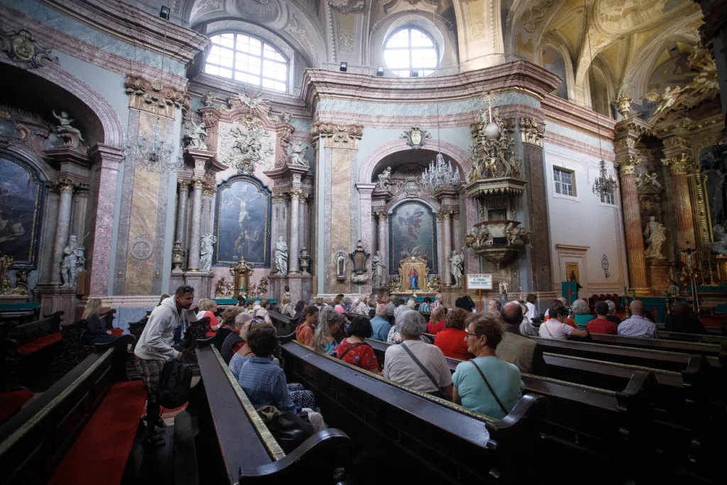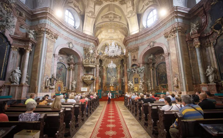 O to, aby celá prehliadka bola tip-top, sa nad rámec bežnej normy zaslúžila naša stálica Eva Trúchla. Spolu s ňou sme sa ponorili do 300-ročnej histórie svätostánku, kochali sme sa jeho nádhernou výzdobou (monumentálne maľby Bibienu stoja za to!). No a napokon sme sa vďaka veľmi ústretovému pánovi kaplánovi dostali aj do krýpt kostola, ktoré mnohí z nás videli vôbec po prvý raz. Bol to zážitok!