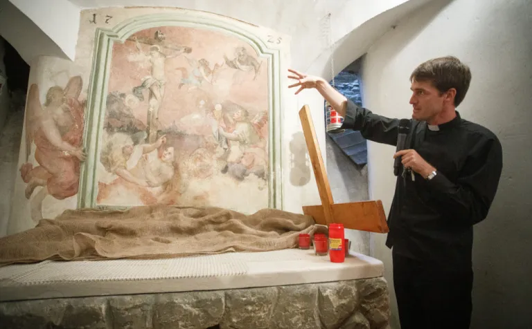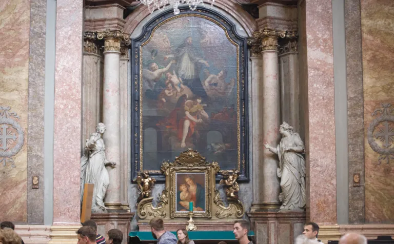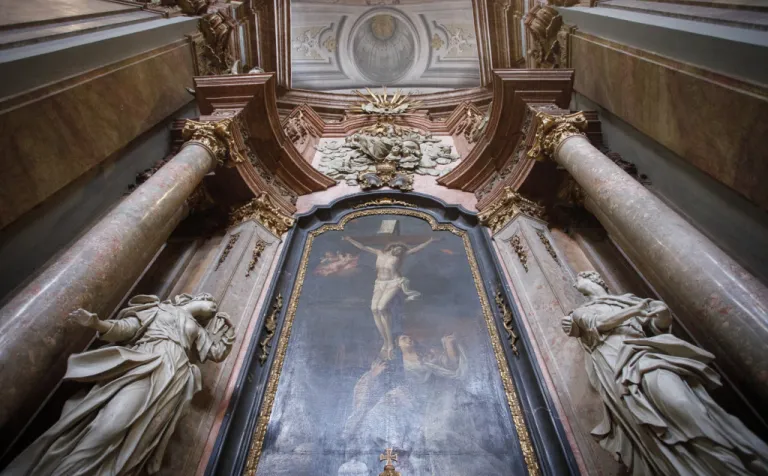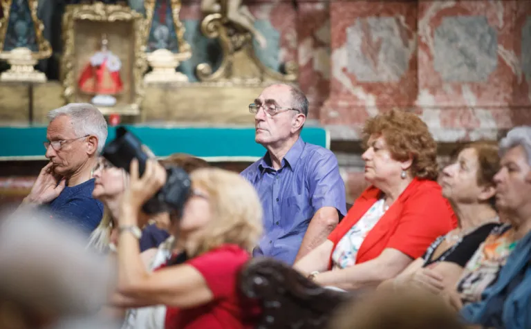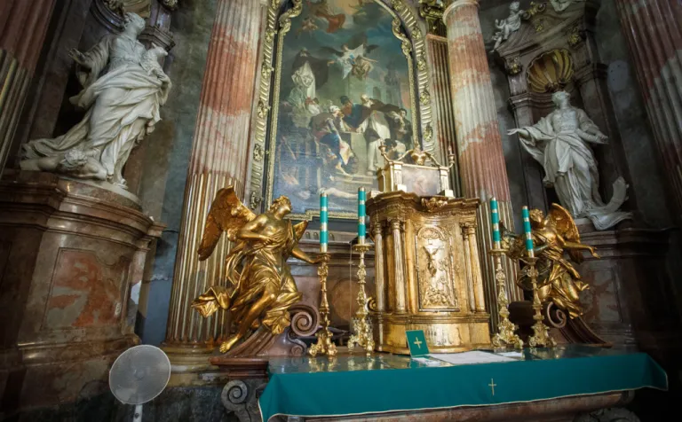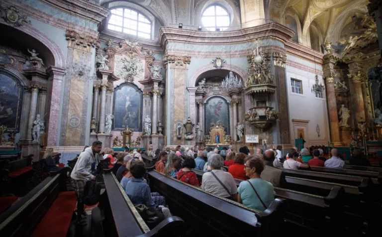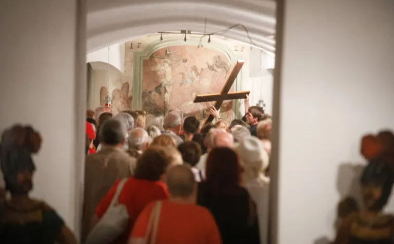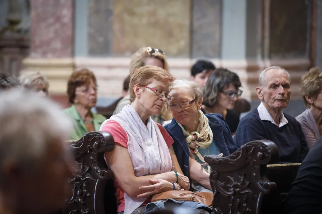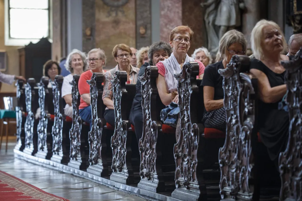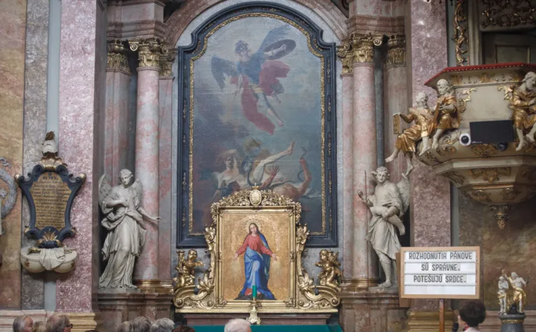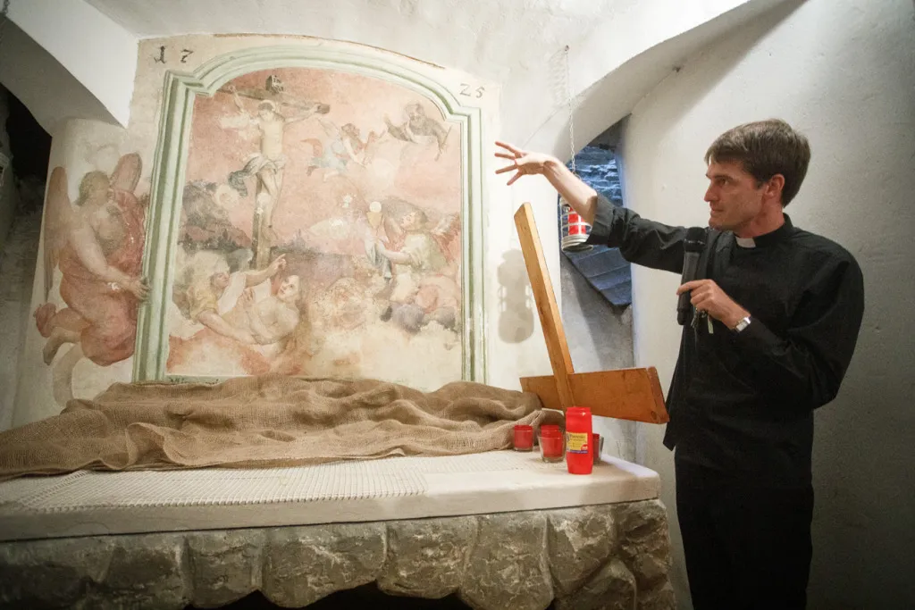 O to, aby celá prehliadka bola tip-top, sa nad rámec bežnej normy zaslúžila naša stálica Eva Trúchla. Spolu s ňou sme sa ponorili do 300-ročnej histórie svätostánku, kochali sme sa jeho nádhernou výzdobou (monumentálne maľby Bibienu stoja za to!). No a napokon sme sa vďaka veľmi ústretovému pánovi kaplánovi dostali aj do krýpt kostola, ktoré mnohí z nás videli vôbec po prvý raz. Bol to zážitok!