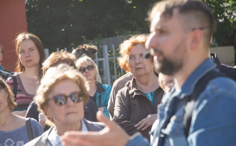 Naším sprievodcom bol tentoraz podpredseda OZ Bratislavské rožky Ján Vyhnánek, vďaka ktorému sme mohli aspoň na chvíľu zabudnúť na problémy spájajúce sa s touto ulicou. Prostredníctvom výsledkov svojho najnovšieho výskumu a zaujímavého výkladu nám toto miesto predstavil v celkom inom svetle.