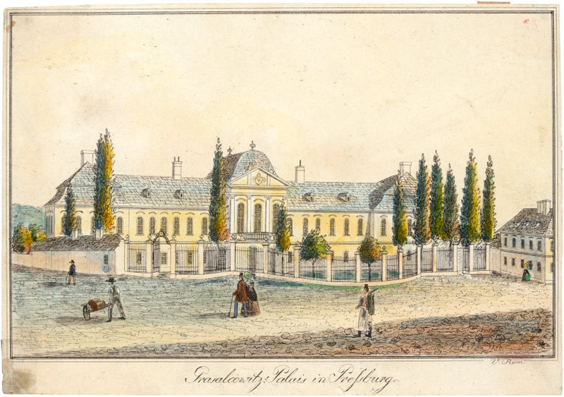 Grassalkovichov palác, cca 1850. Zdroj: Galéria mesta Bratislavy