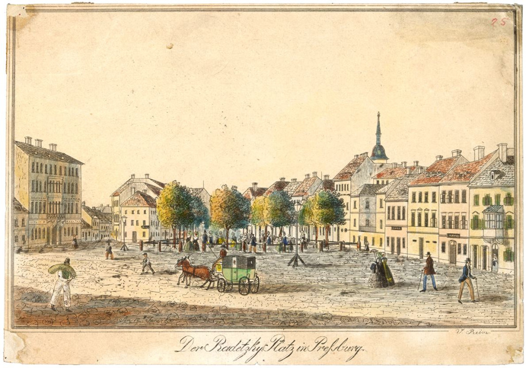 Hviezdoslavovo námestie (Radetzkyplatz), cca 1850. Zdroj: Galéria mesta Bratislavy