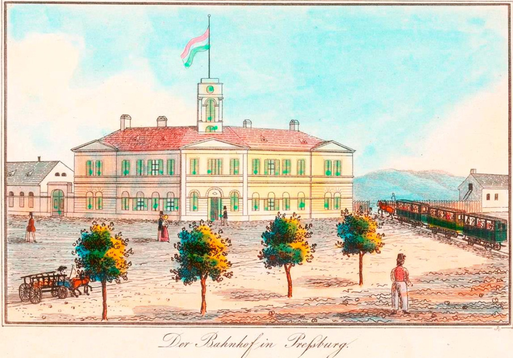 Stanica konskej železnice, cca 1850. Zdroj: Galéria mesta Bratislavy