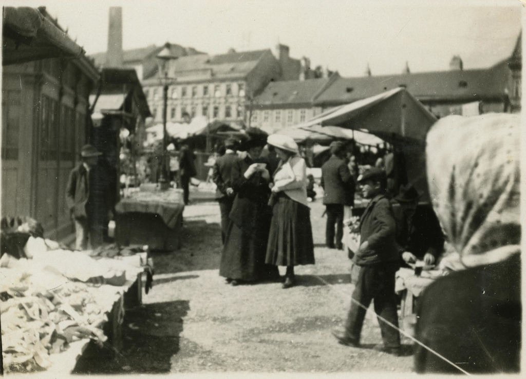 Tržné námestie (dnes Námestie SNP), okolo roku 1910. Zbierka: L. Kalman