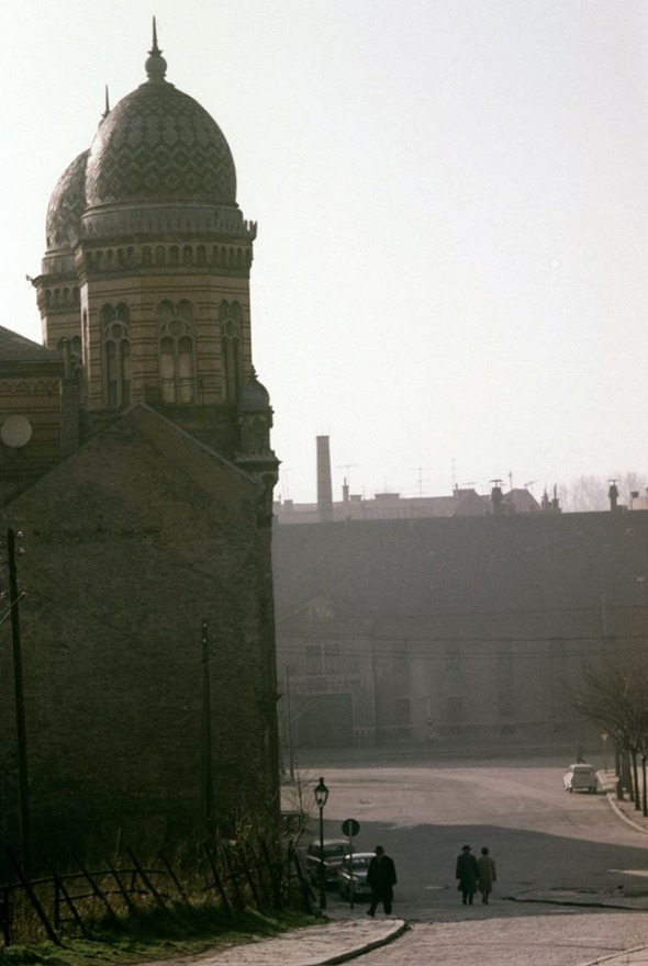 Neologická synagóga v pozadí s meštianskym pivovarom v roku 1968