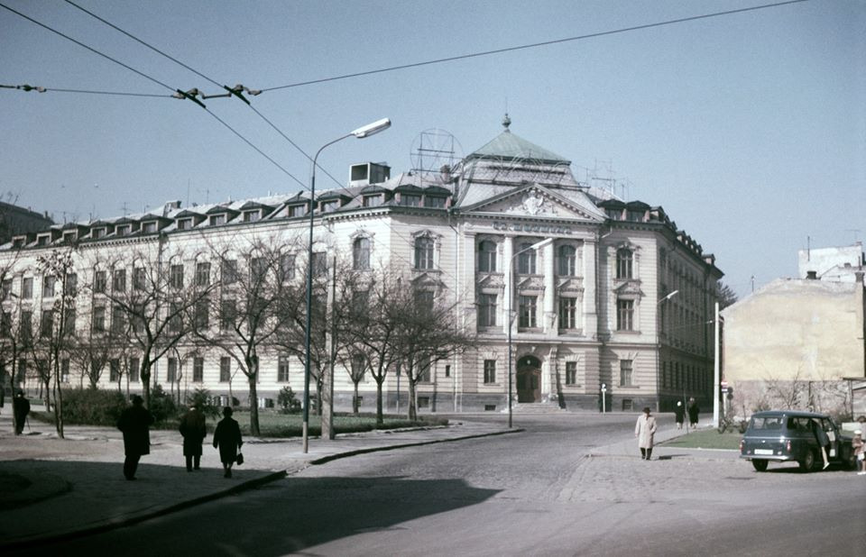 Budova bývalého Hotela Dax, neskôr Hotela Kriváň, na dnešnej Štefánikovej ulici v roku 1969