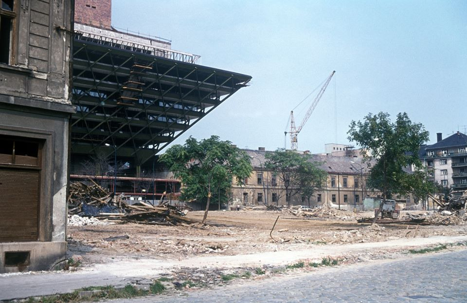 Úprava terénu okolo budovy Slovenského rozhlasu v roku 1977