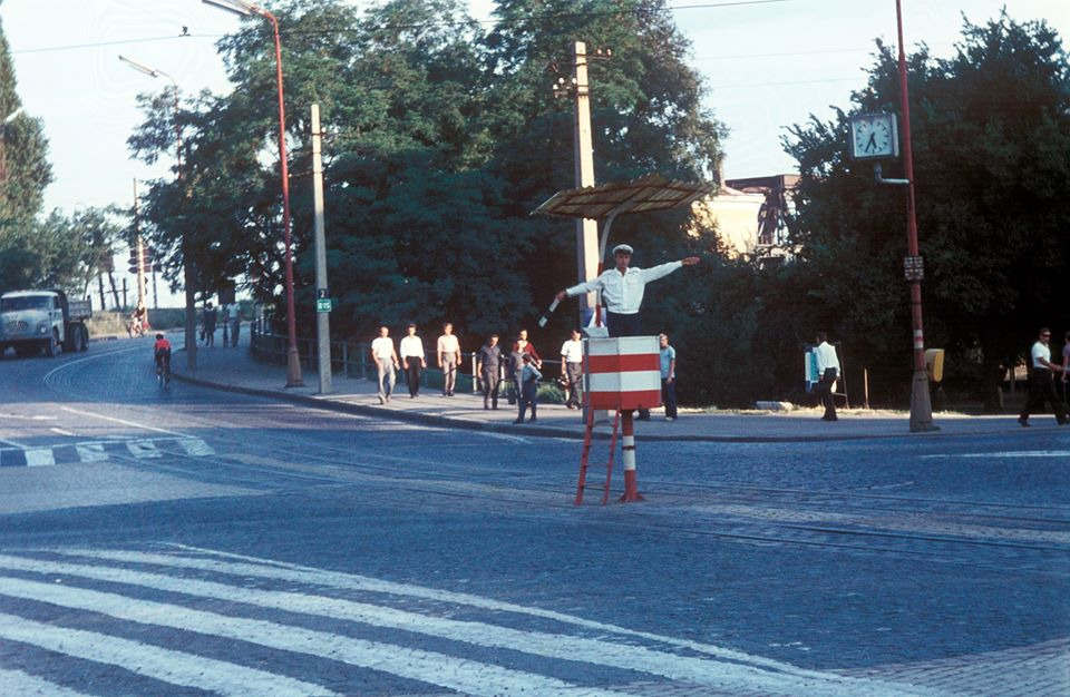 Veža pri Starom moste v roku 1974, z ktorej policajti riadili dopravu