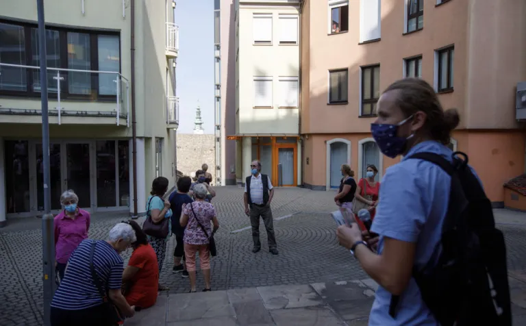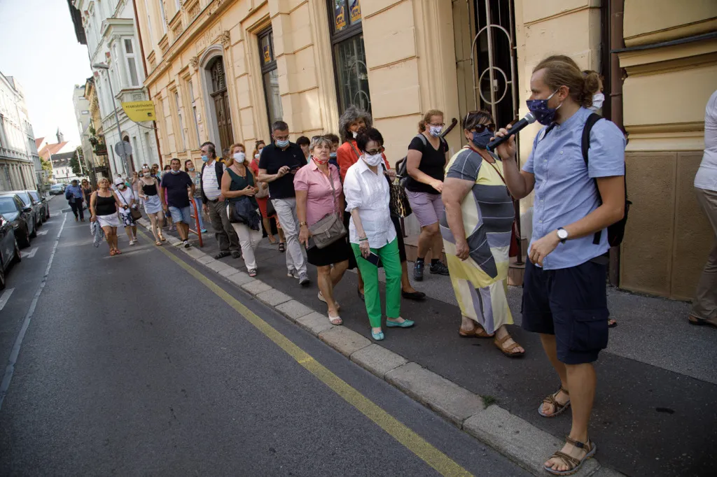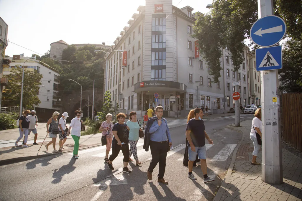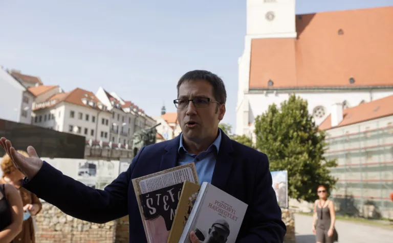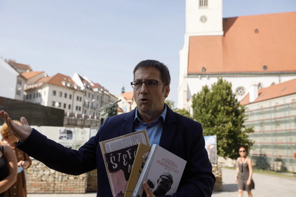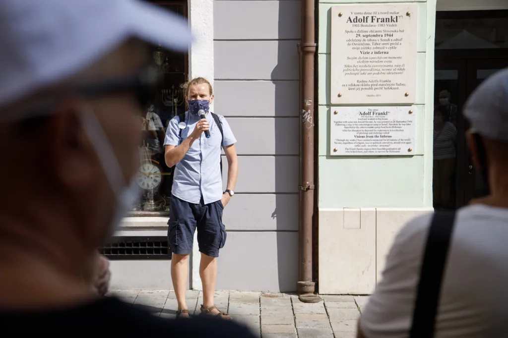 Turistický sprievodca a pedagóg Základnej školy a Gymnázia s VJM na Dunajskej ulici v Bratislave László Borka priblížil 56 záujemcom židovské pamiatky a významné židovské osobnosti mesta, ale aj minulosť a súčasnosť ortodoxnej a neologickej náboženskej obce.