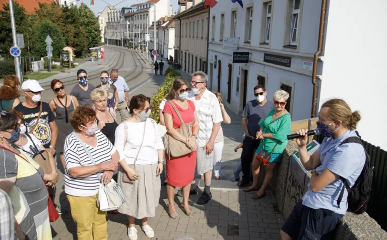Vychádzková trasa sa dotkla nasledovných bodov a ulíc: miesto bývalej neologickej synagógy, Ventúrska ulica, Klariská ulica, Kapucínska ulica, Kozia ulica, Podjavorinská ulica (kedysi Ulica Teodora Edla), Zámocká ulica a Židovská ulica. Vnímavé a vytrvalé publikum sa na záver vrátilo k pamätníku holokaustu na mieste bývalej neologickej synagógy.