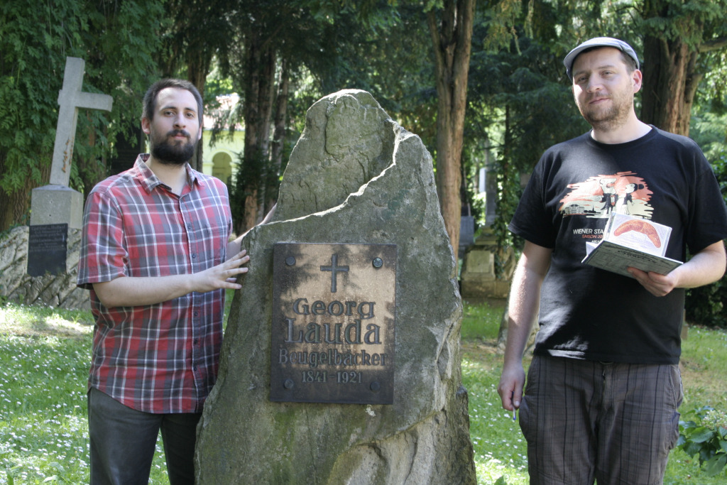 S podpredsedom OZ Jánom Vyhnánkom pri hrobe pekára bratislavských rožkov Georga Laudu