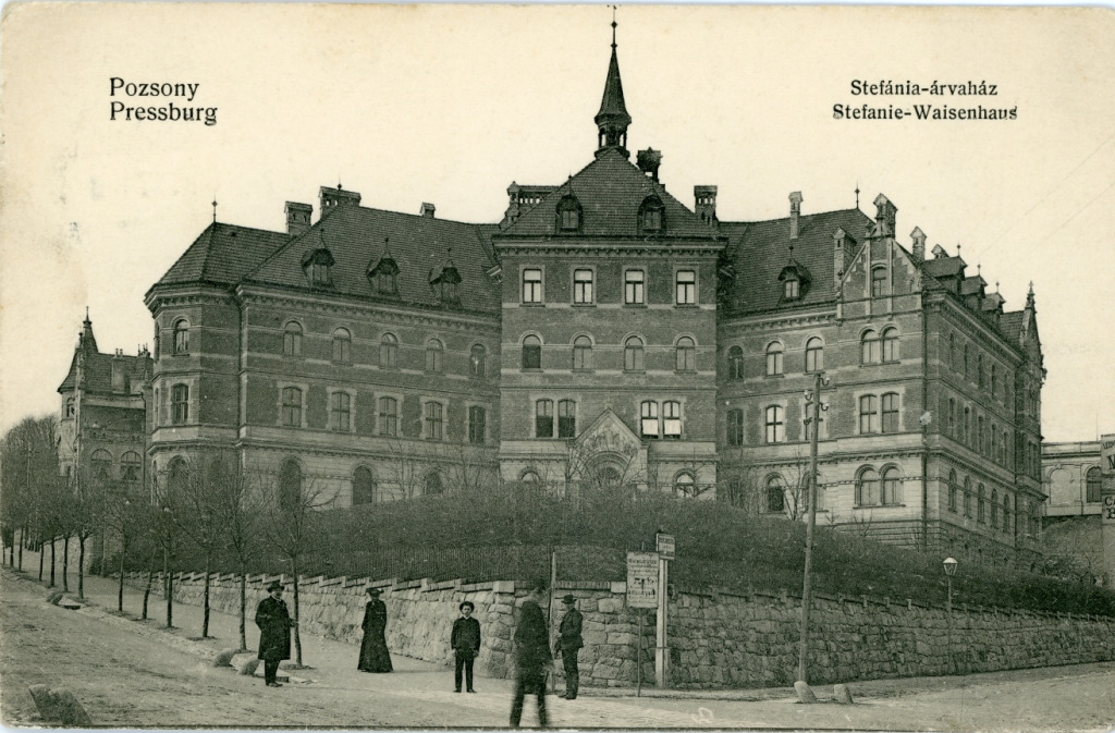 Do tretice spomeňme dielo trochu iného charakteru. V malebnej časti Bratislavy, na kopčeku medzi Hlbokou cestou a Sokolskou cestou, stojí nádherná budova, ktorá prezrádza, že ju navrhli v krajších časoch a s vycibrenejším vkusom než takzvané moderné stavby zo skla a ocele, odzrkadľujúce diametrálne odlišné estetické cítenie. A hoci okolie prešlo medzičasom výraznými zmenami, impozantnú budovu Mestského sirotinca Márie Ochrankyne (niekde sa uvádza pod názvom Sirotinec Máriina ochrana – pozn. prekl.), ktorú v čase otvorenia v roku 1900 tiež považovali za modernú, bolo vidieť už z diaľky. Tým, čo sa vydali na prechádzku a blížili sa k Horskému parku, obľúbenému výletnému miestu Prešporčanov (Bratislavčanov), sa otvoril výhľad na trojposchodovú budovu v historizujúcom neorománskom a neogotickom slohu, s prvkami severskej renesancie. Za fasádou, ktorá je od druhého poschodia obložená červenými neomietnutými tehlami, sa nachádzali obytné priestory pre 120 detí, triedy aj kaplnka. Budova bola druhým domovom sirotinca, ktorého otvorenie navrhol v roku 1830 Spolok na ochranu detí, založený grófkou Teréziou Brunswick. Prvé zariadenie poskytovalo domov deťom, ktoré osireli počas pandémie cholery. S účinnou podporou grófa Františka Zichyho, ktorý v čase epidémie pôsobil ako kráľovský komisár, ho dal vybudovať staviteľ Ignác Feigler na dnes už neexistujúcej Valónskej ulici. Od roku 1885 začali inštitúciu nazývať po jej vtedajšej patrónke belgickej princeznej Štefánii, manželke následníka rakúsko-uhorského trónu Rudolfa Habsbursko-Lotrinského. Charakter sirotinca, ktorý prijímal katolícke aj evanjelické siroty, sa koncom storočia zmenil. A keď sa zariadenie, ktoré sa medzičasom premenovalo na Sirotinec a výchovný ústav Márie Ochrankyne, dostalo v deväťdesiatych rokoch do pôsobnosti milosrdných sestier (paulínok) z rádu sv. Vincenta de Paul, nadobudlo katolícky ráz. Sirotinec a škola sídlili v budove do konca 2. svetovej vojny; od roku 1945 v nej zostala iba škola – spočiatku šesťročná ľudová, neskôr (v súlade so zmenami vo vzdelávacom systéme) osemročná stredná škola, deväťročná základná škola a v súčasnosti základná škola s komplexnou organizačnou štruktúrou.