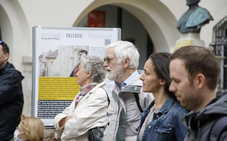 Na paneloch v slovenskom, maďarskom a nemeckom jazyku ožívajú príbehy starých prešporských rodín, ktoré predstavujú ich potomkovia: Péter Aich, Mária Bertha, Mihály Brogyányi, Gergő Holényi, Peter Janoviček, Ladislav Kálmán, Zoltán Samarjay, Monika Schweighofer a Marta Sovincová.