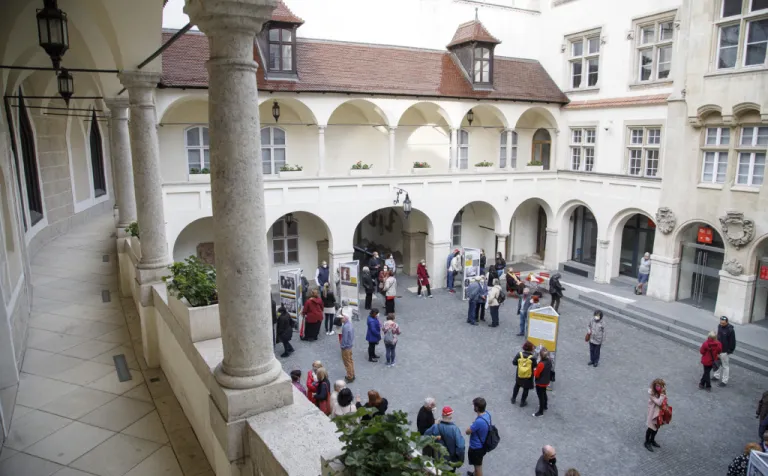 Výstavu, ktorá zároveň odkrýva fragmenty z histórie mesta a približuje identitu starých Bratislavčanov (Prešporčanov), plánovalo OZ Bratislavské rožky zorganizovať ešte minulý rok, no pre pandemické opatrenia spojené s koronavírusom sa to podarilo až teraz. Bolo veľmi príjemné vidieť a počuť, ako prítomní na vernisáži 18. mája trávili chvíle na honosnom nádvorí dlhými a nadšenými rozhovormi.