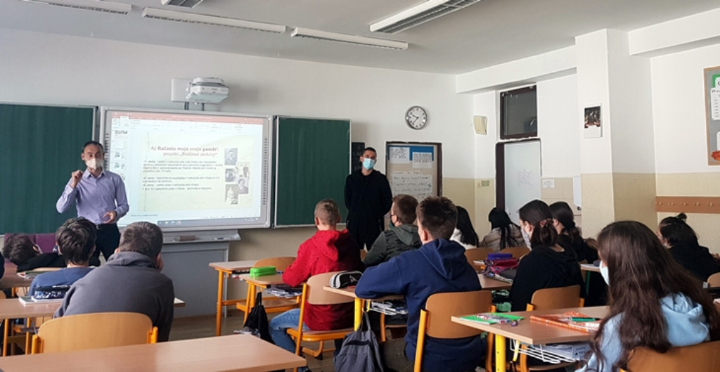 Prof. Juraj Šedivý a Dr. Ivan Chylák žiakom ZŠ Tbiliská prezentujú, aké zaujímavé môžu byť historické fotografie alebo písomnosti z rodinných archívov.