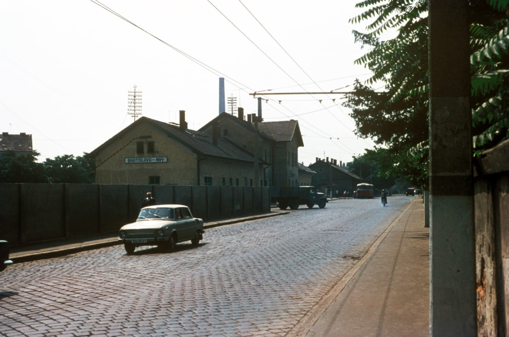 Niekdajšia tvár Karadžičovej ulice s „malou stanicou“ (oficiálne nazývanou Stanica Bratislava-Nivy), ktorá pre obyvateľov Žitného ostrova po desaťročia znamenala vstupnú bránu do Bratislavy. Mačacie hlavy medzičasom odstránili, cestu rozšírili (kvôli nej „odštipli“ aj jeden pruh z východného okraja Ondrejského cintorína) a stanicu zbúrali. Dnes sa na jej mieste nachádza komplex budov City Business Centre (CBC).