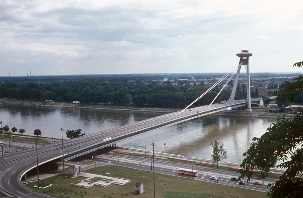 Výhľad z hradu na Most SNP a Petržalku začiatkom 70-tych rokov. Je to neuveriteľné, ale takto vyzerala Petržalka bez panelákov – ešte predtým, ako tu postavili najväčšie sídlisko v strednej Európe.