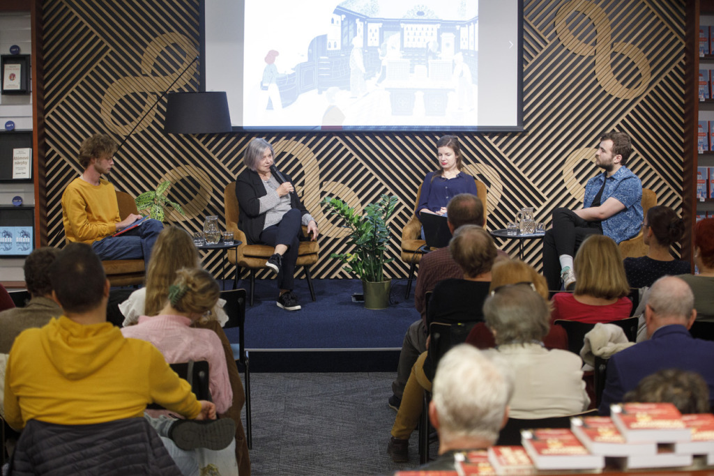 Jana Juráňová publiku priblížila zaujímavosti zo zákulisia vzniku a samotného procesu písania knihy, ktorý komplikovala aj tvorba uprostred najintenzívnejšieho obdobia pandémie. Hovorila o svojom osobnom vzťahu k ikonickej budove Lekárne U Salvátora a jej význame pre príbeh Bratislavy ako takej; o tom, že príbeh známej lekárne možno do veľkej miery považovať za symbol histórie mesta ako takého.