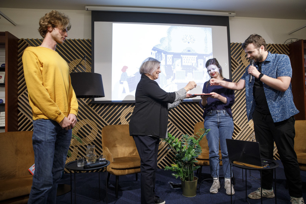 Za OZ Bratislavské rožky podujatie otvorila Eva Bolemant, ktorá na mieste privítala divákov a diváčky a poďakovala všetkým sponzorom, partnerom, podporovateľom a podporovateľkám na Startlabe, bez ktorých by vznik knižky nebol možný.