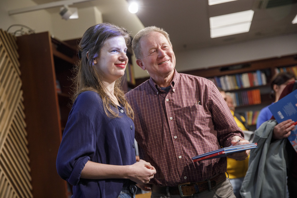 Slovo potom odovzdala samotným autorkám, s ktorými sa zhováral básnik a prekladateľ Michal Tallo.