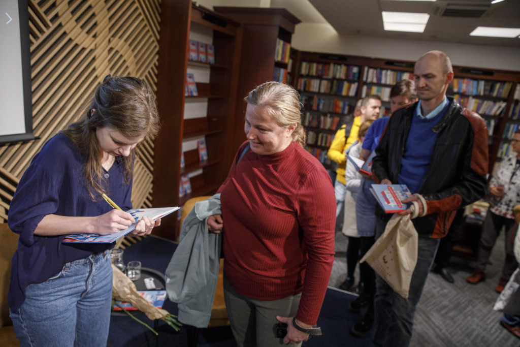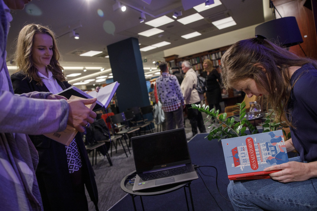 Obe autorky s moderátorom potom knihu symbolicky uviedli do života, ako inak než liekom – prelomili nad ňou tabletu acylpyrinu. Po oficiálnej časti večera samozrejme nemohla chýbať autogramiáda.