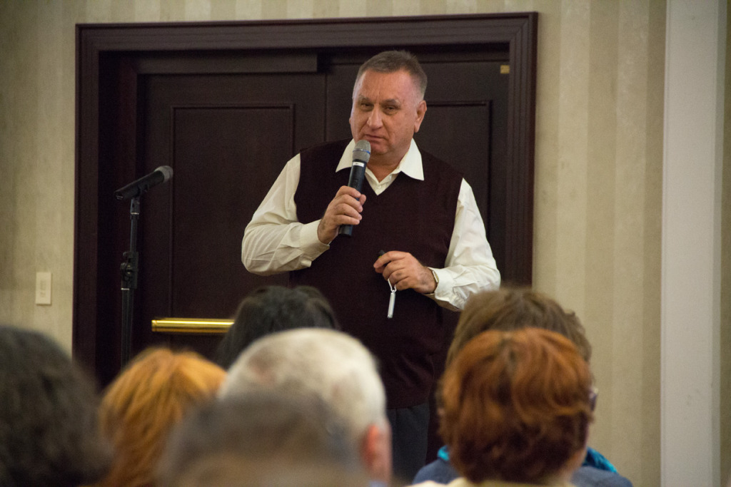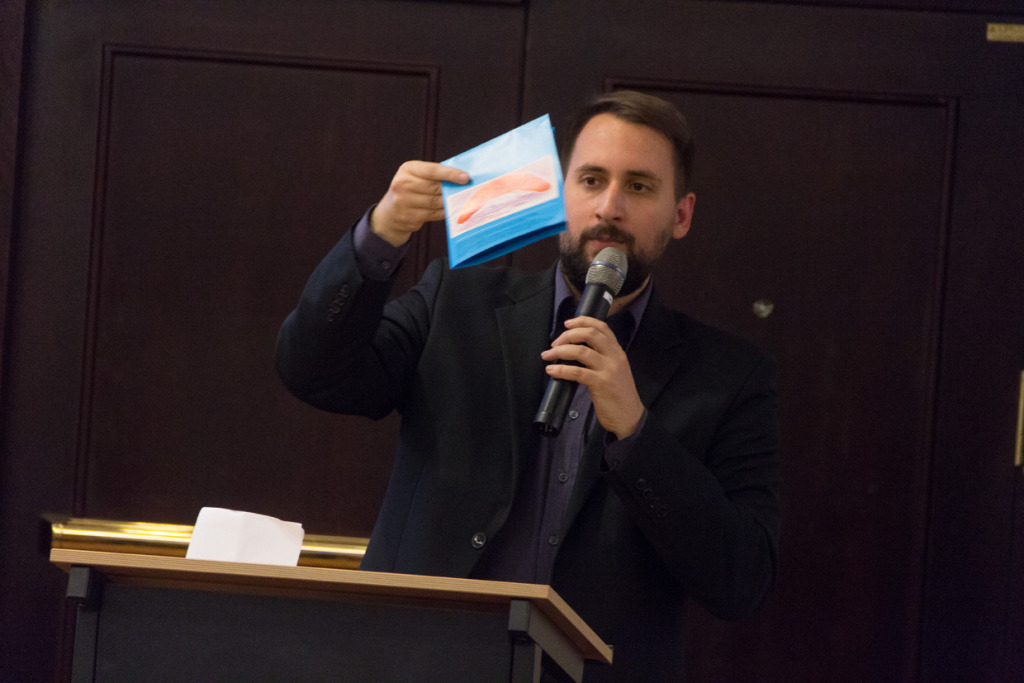 Ján Vyhnánek, prezentuje leporelo o bratislavských rožkoch