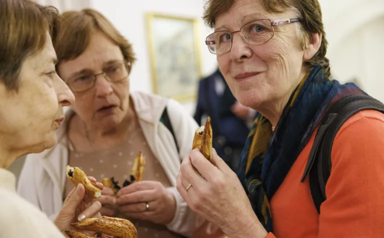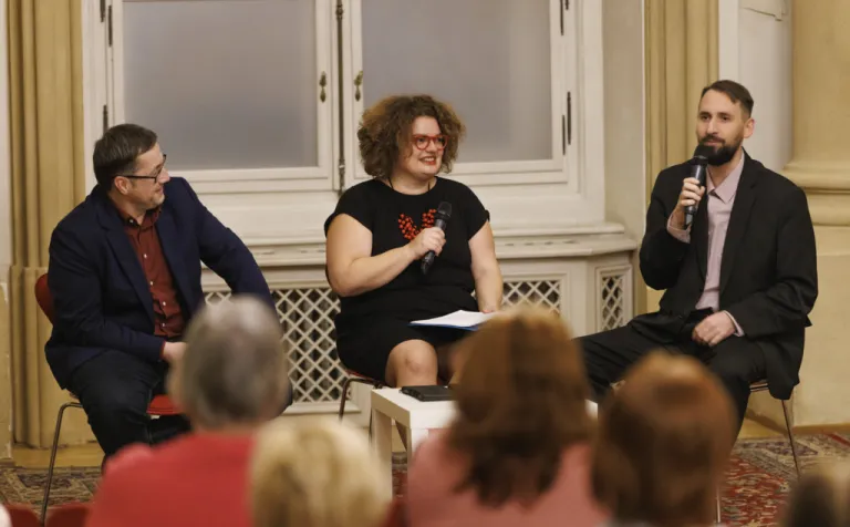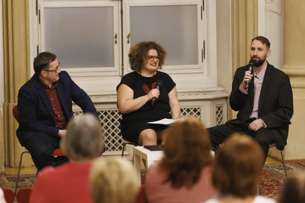 V prvej časti podujatia moderátorka Andrea Makýšová Volárová vyspovedala oboch podpredsedov OZ Bratislavské rožky Jána Vyhnánka a Árpáda Korpása. Témou rozhovoru bol ich vzťah k Bratislave, k občianskemu združeniu, ale aj k pochúťke – bratislavským rožkom. Obaja podpredsedovia sú zároveň sprievodcami po Bratislave a návštevníci podujatia sa dozvedeli aj čo-to zo sprievodcovskej kuchyne. Zhodli sa na tom, že Bratislavčanom sa človek nerodí, ale stáva a nezáleží na rodisku, ale na rozvíjaní vzťahu k mestu.