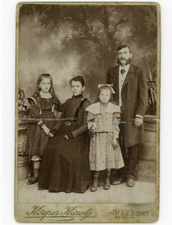 "Na prastarých rodičov z matkinej strany mám veľmi málo spomienok. Čo viem, viem od mamy, ktorá bola najstaršia zo štyroch vnúčat a najlepšie si pamätala práve na starých rodičov... Ponechala si fotografiu prastarých rodičov s dvomi dcérami. Najmladšia sa stala mojou babičkou..."
