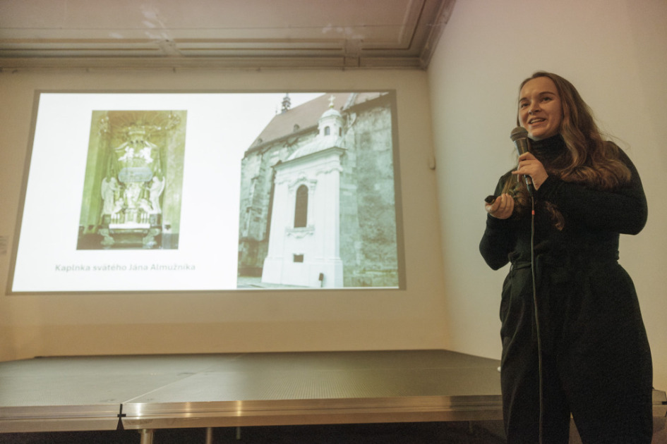 Prednášky sa zhostila kurátorka zbierky starej maľby a sochy GMB Dominika Zbončáková, ktorá patrí k najmladšej generácii bádateľov, no svoju rolu zvládla ako skúsená profesionálka a odborne i s primeranou dávkou humoru nás vnorila do témy. Teší nás, že sme v nej objavili nádejnú bratislavskú historičku, ako aj mimoriadne vysoká účasť obecenstva na prednáške.
