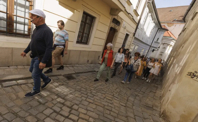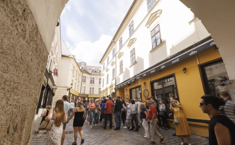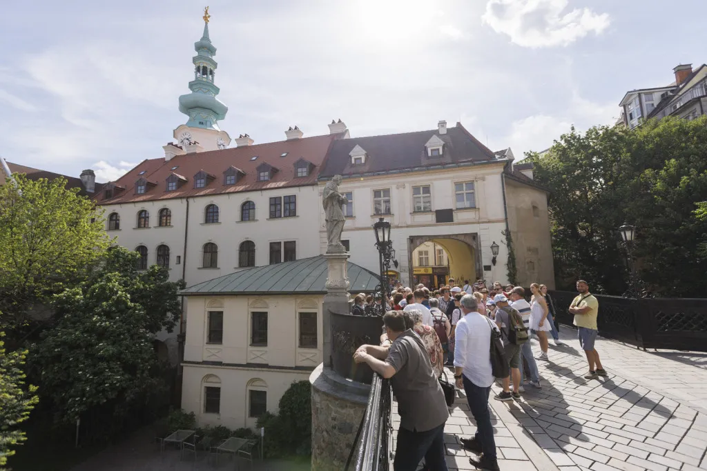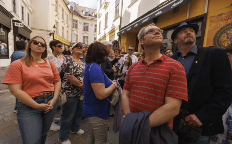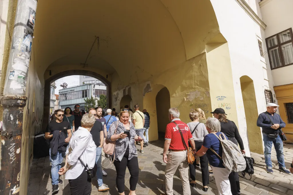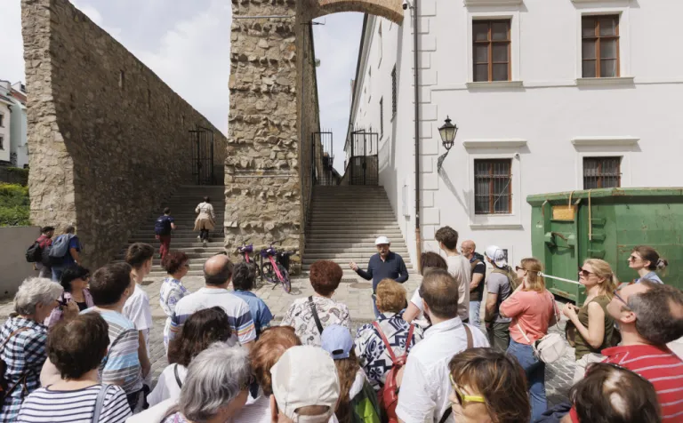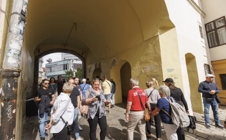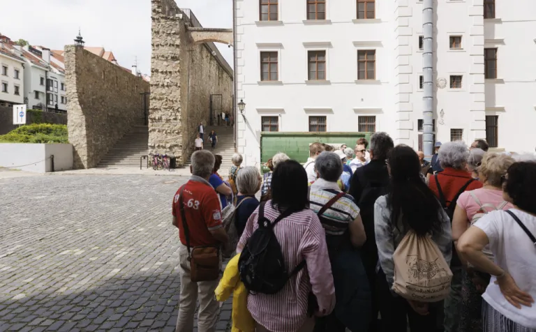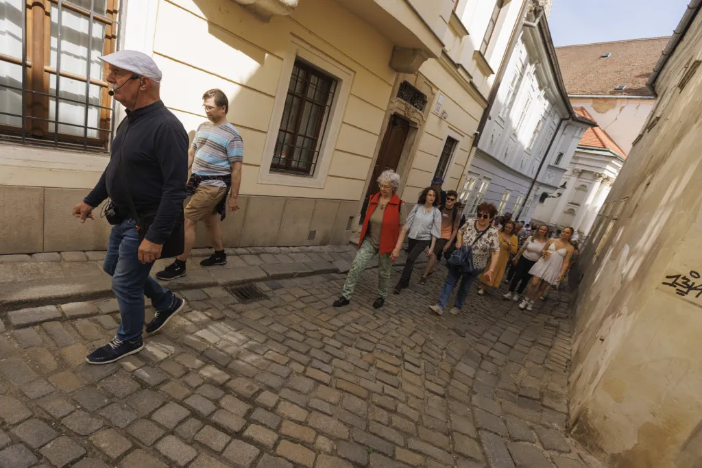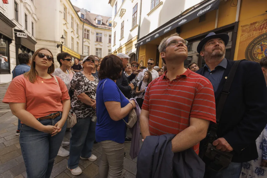 Približne šesťdesiat účastníkov sa vydalo na potulky spred Dómu sv. Martina, aby sa vrátilo do čias, keď ešte Bratislavu (dobový Prešporok) obkolesovali mestské hradby so štyrmi bránami. Turistický sprievodca a miestny historik István Hornyák nás previedol po zachovaných zvyškoch hradieb a predstavil nám nielen ich históriu a dôležitú funkciu, ktorú v minulosti plnili, ale umožnil nám nahliadnuť aj do života starých Prešporčanov.