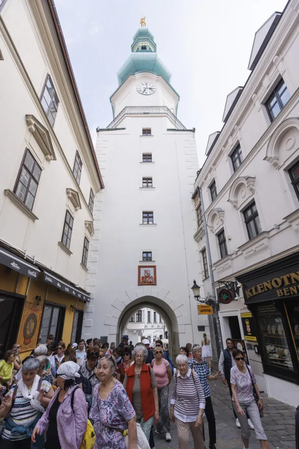 Hlavnú trasu prechádzky určovali štyri mestské brány. Najskôr sme sa pristavili na mieste niekdajšej Vydrickej brány, potom sme cez Promenádu zamierili k Rybárskej bráne, ktorej zvyšky sú aj dnes viditeľné pred budovou Slovenského národného divadla. Nasledovala Laurinská brána a nakoniec Michalská brána – jediná zachovaná a zrekonštruovaná mestská brána.