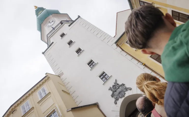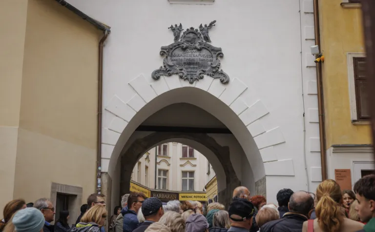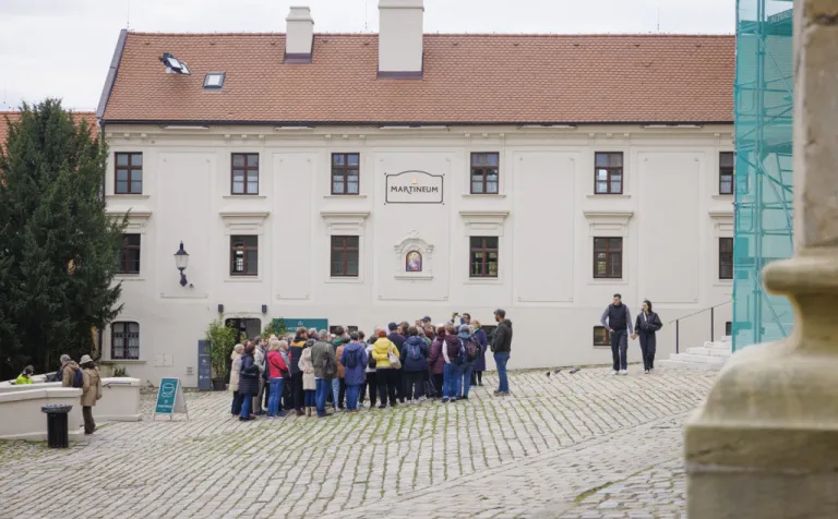 Bratislava (dobový Prešporok) bola korunovačným mestom Uhorského kráľovstva 270 rokov (v rokoch 1563 – 1830). Korunu nasadzovali na hlavy kráľov a kráľovien v Katedrále sv. Martina – a práve tu začala naša sprievodkyňa Beatrix Ordódy svoju prehliadku. Na Rudnayovom námestí, tiahnucom sa popri južnom múre katedrály, sme sa dozvedeli viac o replike Svätej koruny, ktorá zdobí vežu katedrály, ale aj o korune ako symbole objavujúcom sa na viacerých miestach svätyne.