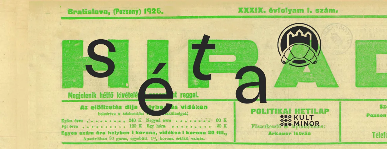 Novinár a sprievodca Árpád Korpás nás vráti v čase. Čo premietali kiná, čo hrali divadlá, o čom písali miestne noviny v Bratislave pred sto rokmi, v roku 1926? Aké budovy zmizli alebo vyrástli zo zeme a ako sa zmenilo mesto, ktoré už sedem rokov patrilo k Československu? Vydáme sa po stopách politických záležitostí, spoločenských a kultúrnych podujatí, vzrušujúcich zločinov. Dotkneme sa aj situácie Maďarov v Bratislave. Nazrieme do už neexistujúcich obchodov, prehliadame inzeráty a spoločne hľadáme ducha Bratislavy tej doby. Nastúpte na časostroj Bratislavských rožkov! Vrátime sa do roku 1926!