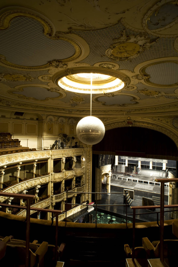 Aber kehren wir erneut zu den Deckengemälden zurück, die das Thema dieses Artikels sind. Laut Jana Laslavíková berichtete die damalige Presse, dass der ursprüngliche Kronleuchter im Jahr 1937 entfernt und ein Wettbewerb für die Gestaltung einer neuen Beleuchtung im Zuschauerraum, im Foyer und in den Treppenhäusern ausgeschrieben wurde. Den Zuschlag erhielt die Firma des führenden tschechischen Kunsthandwerkers Franta Anýž. Der soll alle persönlich versichert haben, dass der neue Kronleuchter für eine ausreichende Beleuchtung der Deckengemälde sorgen wird. Die neue Beleuchtung wurde im Sommer 1938 in Betrieb genommen, aber leider wurden die Gemälde nicht mehr erwähnt. Laut Jana Laslavíková wurden sie zu der Zeit entfernt, als ein Gerüst gebaut wurde, um den alten Kronleuchter zu demontieren und den neuen zu installieren. Ein möglicher Grund für die Entfernung der Deckengemälde könnte ihr ungarisches Erbe oder das Bemühen gewesen sein, sie in einer schwierigen sozialen Situation zu schützen.
