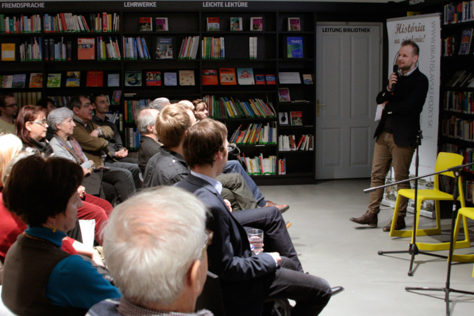 Das alles war am 31. März im Goethe Institut zu hören, wo die deutsche Version der Webseite der Bürgervereinigung Pressburger Kipferl vorgestellt wurde. Auf pressburgerkipferl.sk können Sie ab jetzt die Produkte unserer „Bäckerei” auch auf Deutsch verzehren, bzw. lesen. Die Tätigkeit der Bürgervereinigung hat der Kunsthistoriker Csanda Máté vorgestellt. Dann diskutierte der Schriftsteller Michal Hvorecký mit dem zu sozialistischen Zeiten aus Pressburg emigrierten Robert Hofrichter und mit Peter Janoviček – den Autoren des Buches „Von Pressburg nach Salzburg“.