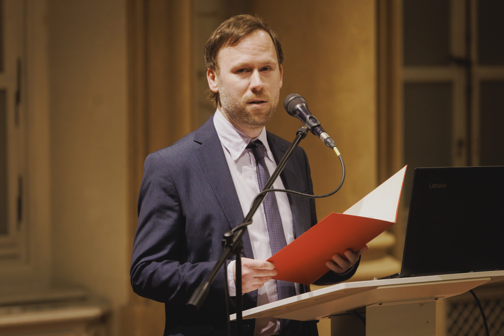 Das festliche Programm wurde von unserem Vizepräsidenten Árpád Korpás moderiert. Der erste Programmpunkt war ein kenntnisreicher Vortrag des Vizepräsidenten unserer Vereinigung Ján Vyhnánek zum Thema „Bedeutende Besuche im Spiegelsaal (mit Schwerpunkt auf der Zwischenkriegszeit)“.